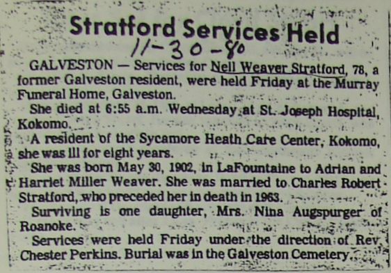 STRATFORDNell  Weaver  30 May 1902 26 Nov 1980 28 Nov 1980  78  4th Add; Sec 1 029  2