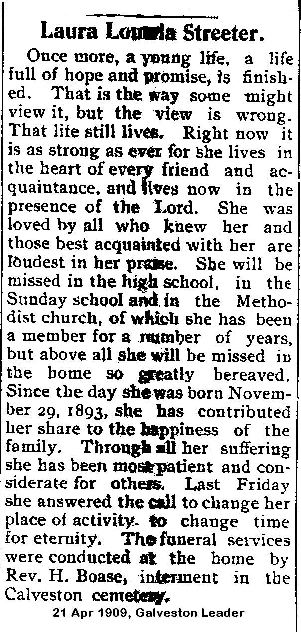 STREETERLaura L.    28 Nov 1893 16 Apr 1909 17 Apr 1909  15  1st Add; Sec 1 041  1