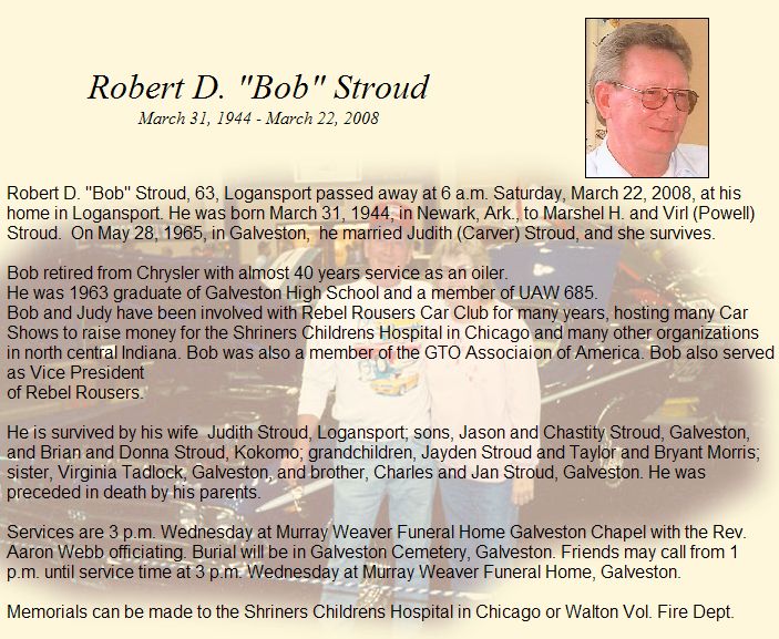 STROUDRobert D.    31 Mar 1944 22 Mar 2008   63