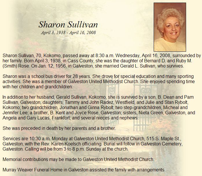 SULLIVANSharon  Rose  3 Apr 1938 16 Apr 2008   70