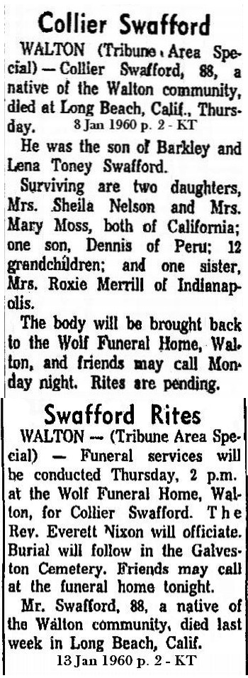 SWAFFORDCollier    25 Feb 1871 5 Jan 1960 14 Jan 1960  88  2nd Add; Sec 1 212  2