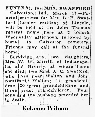SWAFFORDIda May  Bell  10 Jul 1871 26 Feb 1957 1 Mar 1957  85  2nd Add; Sec 1 179  1