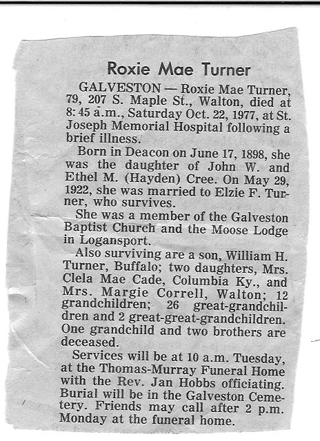 TURNERRoxie    17 Jun 1898 22 Oct 1977 25 Oct 1977  79  4th Add; Sec 1 135  2