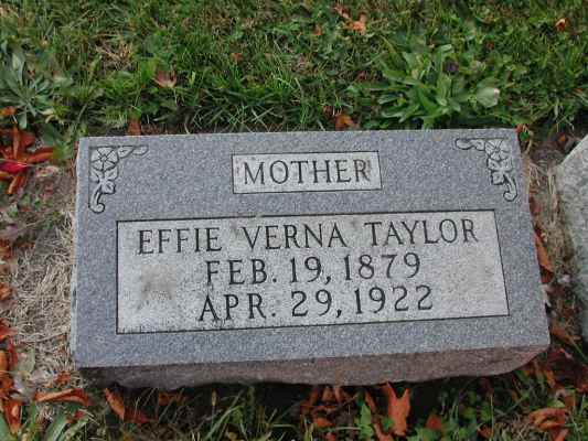 TAYLOREffie Verna    19 Feb 1879 29 Apr 1922 30 Apr 1922  43  2nd Add; Sec 1 150  1