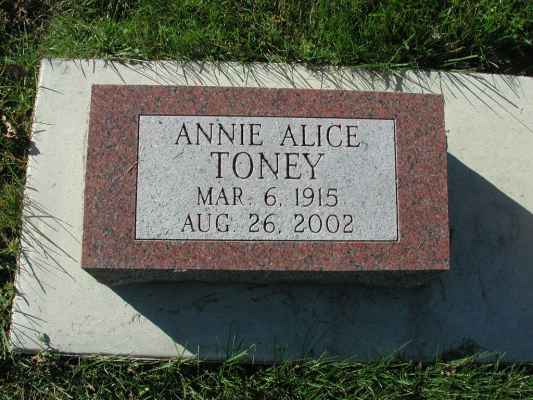 TONEYAnnie Alice    6 Mar 1915 26 Aug 2002   87