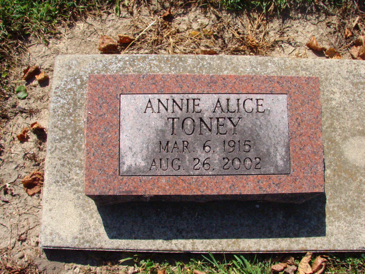 TONEYAnnie Alice    6 Mar 1915 26 Aug 2002   87  3rd Add; Sec 1
