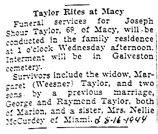 TAYLORJoseph Shoer    4 Sep 1874 14 Aug 1944 16 Aug 1944  69  2nd Add; Sec 1 150  2