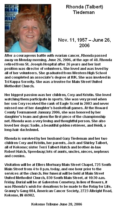 TIEDEMANRhonda  Talbert  11 Nov 1957 26 Jun 2006 29 Jun 2006  48