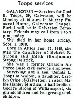 TOOPSOpal B.    25 Jan 1919 1 Sep 1978 4 Sep 1978  59  5th Add; Sec 3 144  1