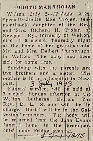 TROJANJudith Marie     1 Jul 1943 4 Jul 1943  10 MOS  2nd Add; Sec 1 124  1