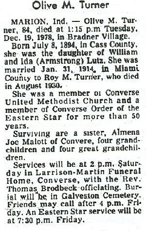 TURNEROlive M.    8 Jul 1894 19 Dec 1978 23 Dec 1978  84  2nd Add; Sec 1 128  2