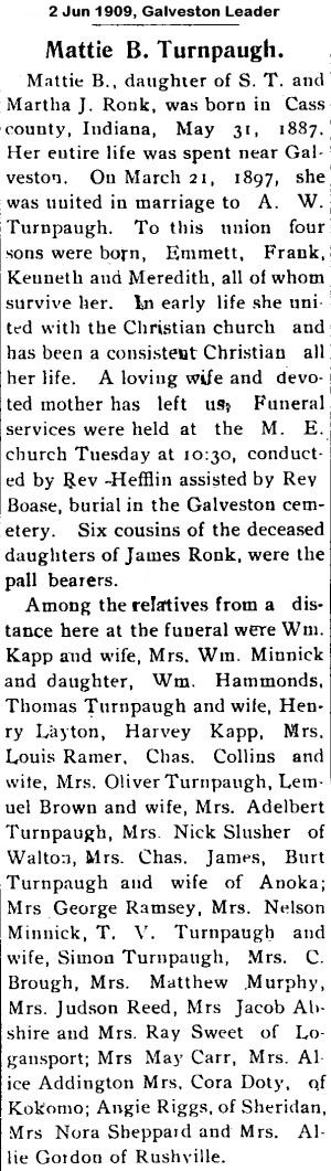TURNPAUGHMattie B.  Ronk  31 May 1879 31 May 1909 1 Jun 1909  30  1st Add; Sec 1 017  1