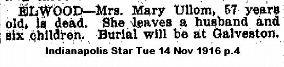 ULLOMMary  Roach  1 May 1859 12 Nov 1916 13 Nov 1916  57  Old Add 123  3