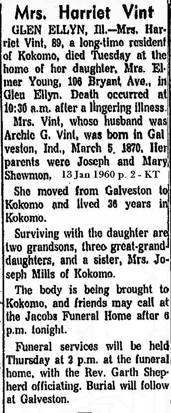 VINTHarriett  Shewmon  5 Mar 1870 12 Jan 1960 14 Jan 1960  89  Old Add 031  5