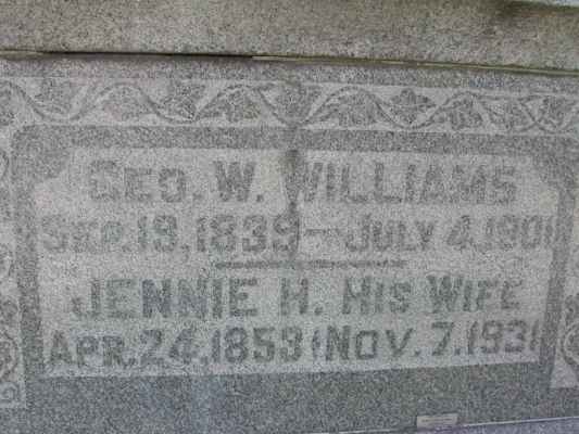WILLIAMSJennie H.  Stanley  24 Apr 1853 7 Nov 1931   78  Old Add 221  2