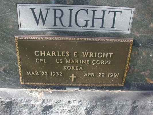 WRIGHTCharles Edw. "Chuck"   22 Mar 1932 22 Apr 1991 25 Apr 1991 US Marine Corps 59  5th Add; Sec 1 083  2