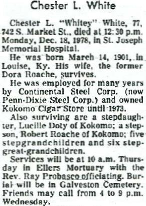 WHITEChester L.    14 Mar 1901 18 Dec 1978 21 Dec 1978  77  2nd Add; Sec 1 172  3