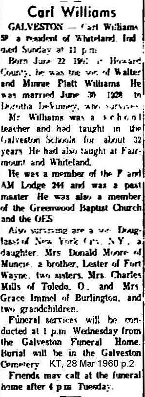 WILLIAMSCarl    22 Jun 1901 27 Mar 1960 30 Mar 1960  58  3rd Add; Sec 1 235  1