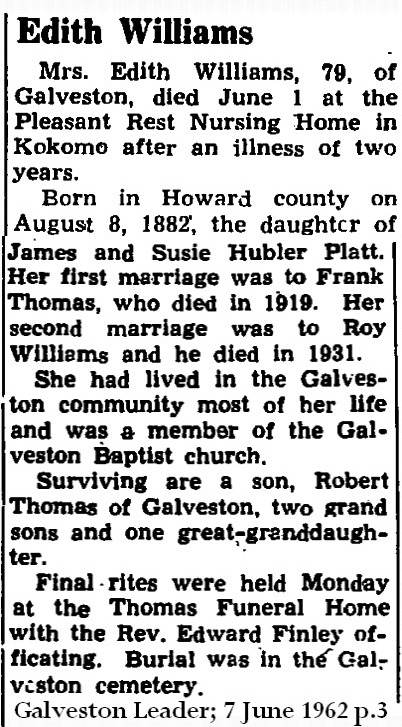 WILLIAMSEdith  Thomas  8 Aug 1882 1 Jun 1962 4 Jun 1962  79  2nd Add; Sec 1 089  2