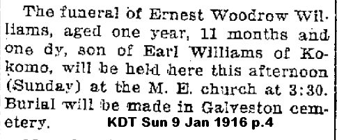 WILLIAMSErnest Woodrow     Feb 1915  Jan 1916 9 Jan 1916  11mo
