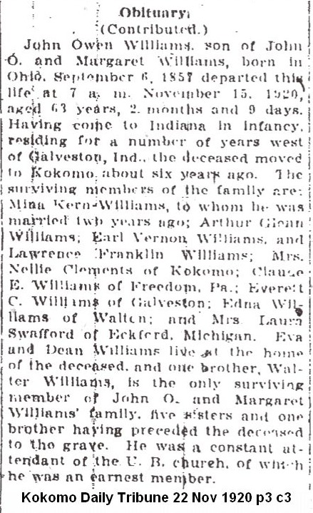WILLIAMSJohn Owen    6 Sep 1857 15 Nov 1920 18 Nov 1920  63  Old Add 242  5