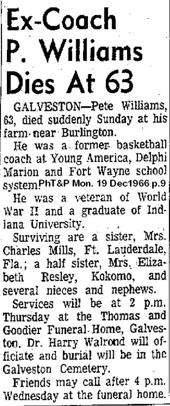 WILLIAMSLester Lee (Pete)    12 Jul 1902 18 Dec 1966 22 Dec 1966 WWII 64  3rd Add; Sec 1 216  6