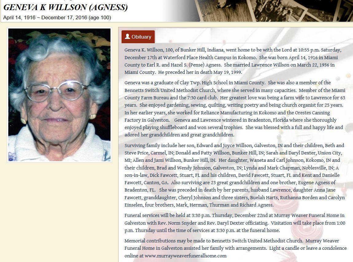 WOOLETRuth Anna  Winslow  21 Mar 1909 26 May 1994 30 May 1994  85  3rd Add; Sec 1 112  5