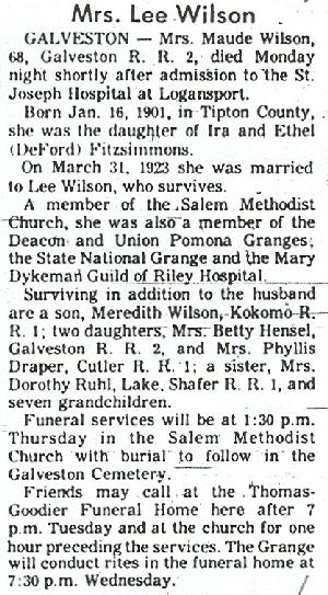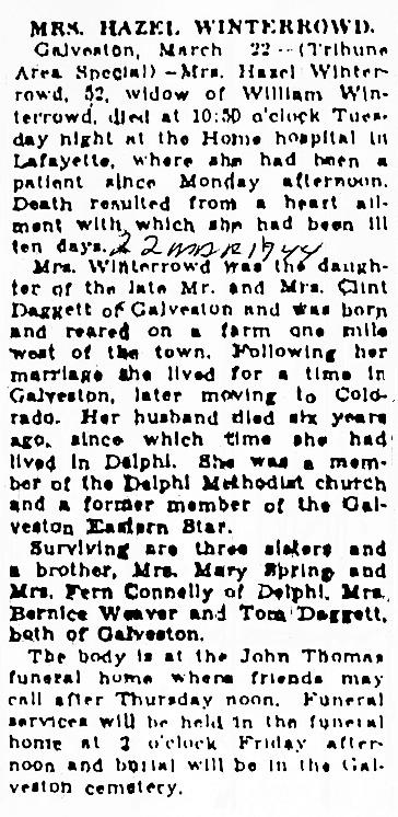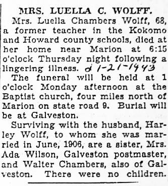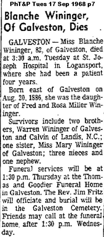 WOODLettie May  Erbaugh  24 Dec 1889 29 Sep 1973 1 Oct 1973  83  3rd Add; Sec 1 238  2