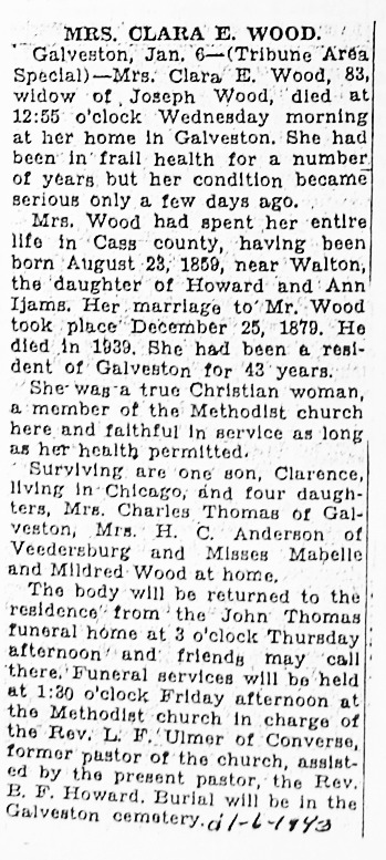 WOODClara E.  Ijams  23 Aug 1859 6 Jan 1943 8 Jan 1943  83  3rd Add; Sec 1 139  2