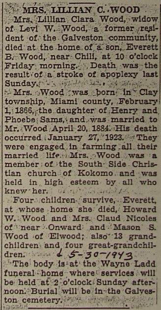 WOODLillian Clara  Sams  1 Feb 1866 4 Jun 1943 6 Jun 1943  77  Old Add 349  2