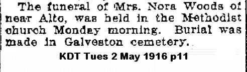 WOODSNora    Abt 1865 xx Apr 1916 1 May 1916  51